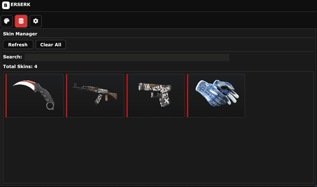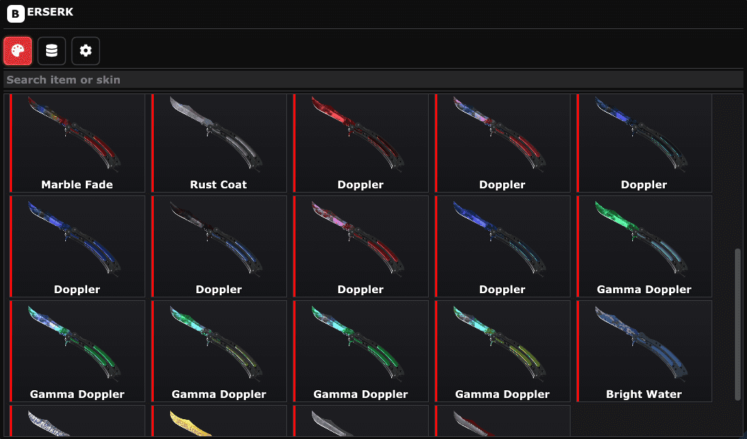 Berserk Changer is amazing. Switching skins, knives, and gloves is instant and so easy to use.